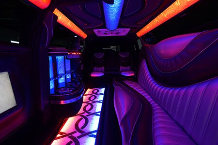 Our Range Rover limousine, with falcon wing doors, fits a maximum of 12 passengers. For those who have a couple close friends who want cheap transportation to an event or activity. Just because it's the smallest doesn't mean you'll miss out on amenities. It's still full of things to enjoy while you are riding.
